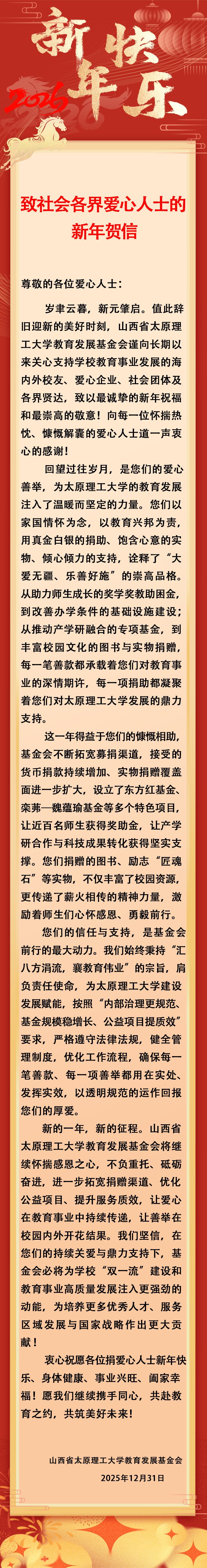 致社会各界爱心人士的新年贺信