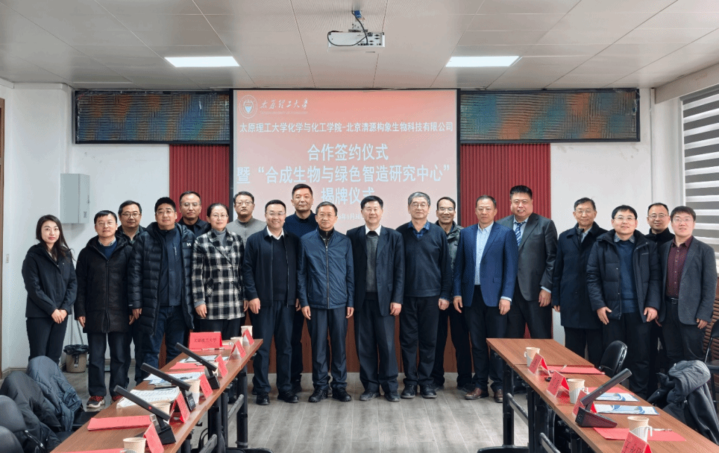 1月30日下午,化学与化工学院与校友企业北京清源构象生物科技有限公司在迎西校区三楼会议室签订《产学研战略合作协议书》,并举行合成生物与绿色智造研究中心揭牌仪式。双方将在合成生物与绿色制造领域的联合技术攻关、项目申报、科技成果转化及人才培养等方面开展深度合作。