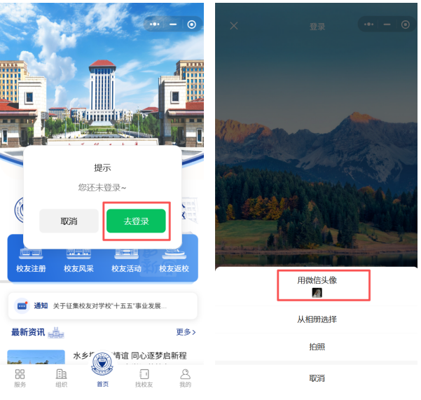 进入小程序首页,点击首页,校友注册。填写本人持有的身份证号码,进入人脸识别认证;