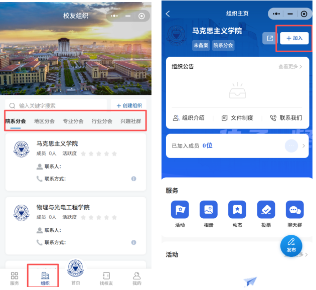 ·可加入各地、各学院、各行业及兴趣校友组织,拓展校友人脉。