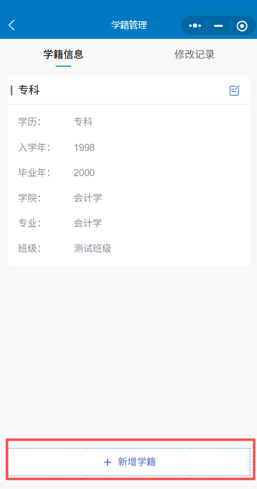 温馨提示:关于在校有多段学习经历的情况,如有未关联到的档案,认证通过后,可以在“我的-我的学籍”中新增学籍进行完善。![]()