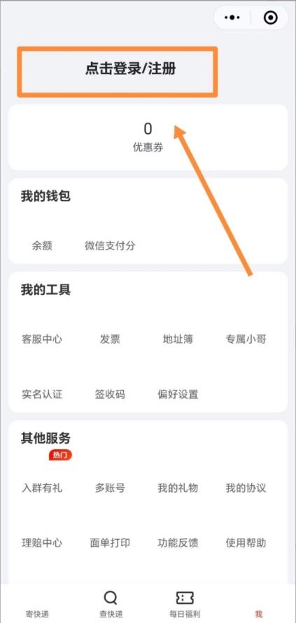5、返回主页面,点击左上角的“寄快递”。