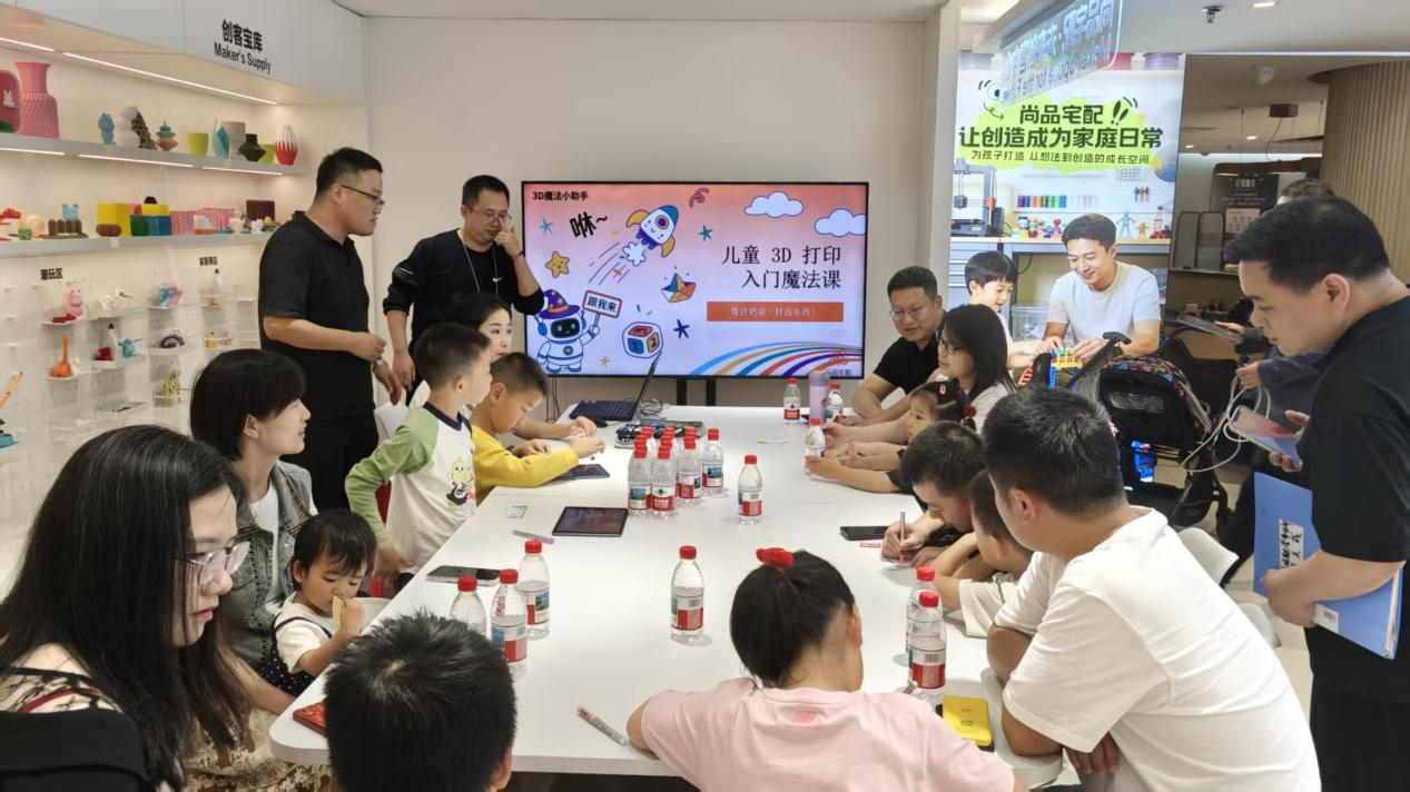 本次参访特别设置亲子研学环节,为随行小朋友量身打造“儿童3D打印入门魔法课”。在创客宝库体验区,工作人员以生动易懂的方式讲解3D打印的原理与应用,带领孩子们亲手设计并创作专属小物件,从潮玩摆件到家居用品,一件件充满创意的作品在孩子们的巧手中诞生。孩子们在实践中感受科技与创造的乐趣,家长们全程陪伴、互动协作,在温馨的亲子时光中增进情感联结,也让本次参访活动更添温度与温情。