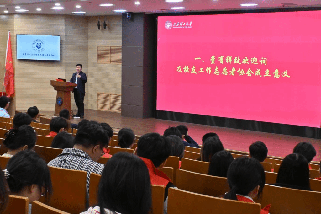 春风送暖,薪火相传;情系母校,共启新章。为进一步凝聚校友力量、搭建母校与校友沟通桥梁,4月14日,太原理工大学校友工作志愿者协会成立大会在学校图书馆报告厅隆重举行。国内交流合作办公室(校友工作办公室)主任,校友会秘书长游志勇、校团委副书记田韶华、国内交流合作办公室(校友工作办公室)校友工作科科长,校友会副秘书长董有祥、校团委校园文化部副部长许多多、材料科学与工程学院辅导员,校友工作志愿者协会指导教师路晨鹤及太原理工大学校友工作志愿者协会全体成员齐聚一堂,共同见证这一重要时刻。